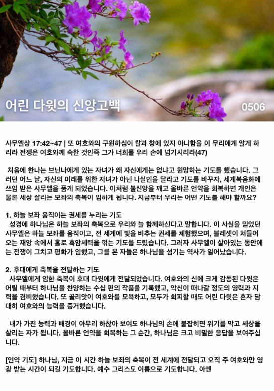 | 정복자의 기도(로마서 16:3~4)-기도수첩 (0) | 2022.05.05 |