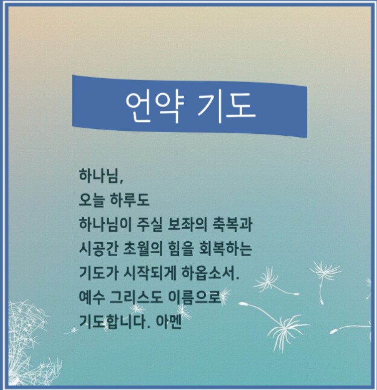 [언약 기도] 하나님, 참된 힘을 얻는 성령 충만을 주시고 미래를 살리는 축복을 받아 세상을 이길 응답 속으로 들어가게 하옵소서. 예수 그리스도 이름으로 기도합니다. 아멘