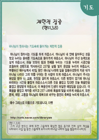 | 제한적 집중(사도행전 1:1, 3, 8)-기도수첩 (0) | 2022.05.13 |