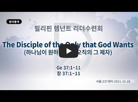 2022년 5월 25일(수) 분류 2021- 필리핀 렘넌트 리더수련회 제목 The disciple of the only 성경 창세기 37:1-11 일시/장소 2021년 11월 2일, 237센터(온라인) 설교 류광수 목사 (녹취정리: 차동호 목사) 출처 (사)