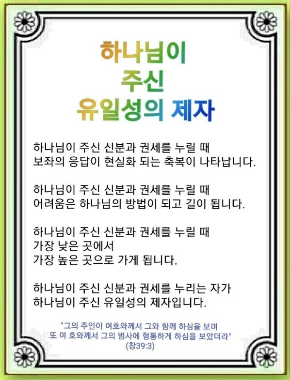 하나님이 주신 유일성의 제자(창세기 39:1~6)
