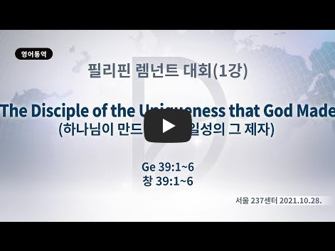 2022년 5월 26일(목) 분류 2021- 필리핀 렘넌트수련회 제목 1강: The Disciple of the uniqueness 성경 창세기 39:1-6 일시/장소 2021년 11월 5일, 237센터(온라인) 설교 류광수 목사 (녹취정리: 차동호 목사) 출처
