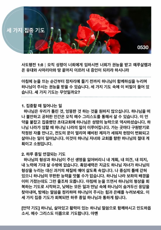 세 가지 집중 기도(사도행전 1:8)