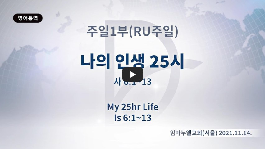 인터넷총국 (홈페이지 http://data.rutc.com) 분류 주일예배 설교- 주일1부 제목 (RU주일예배) 나의 인생 25 성경 이사야 6:1-13 일시/장소 2021년 11월 14일, 임마누엘교회(서울) 설교 류광수 목사 (녹취정
