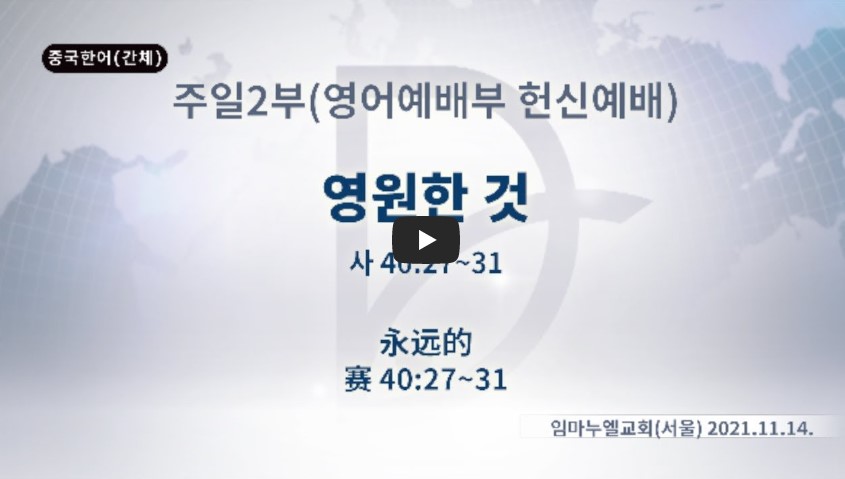 인터넷총국 (홈페이지 http://data.rutc.com) 분류 주일예배 설교- 주일2부 제목 영원한 것 성경 이사야 40:27-31 일시/장소 2021년 11월 14일, 임마누엘교회(서울) 설교 류광수 목사 (녹취정리: 차동호 목