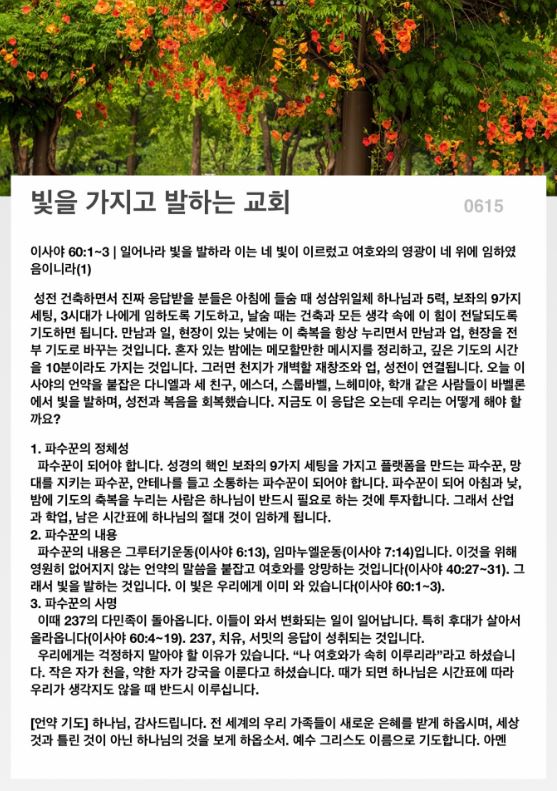 빛을 가지고 발하는 교회(이사야 60:1~3)