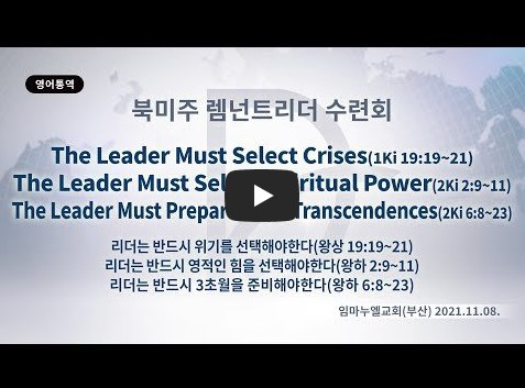 인터넷총국 (홈페이지 http://data.rutc.com) 분류 2021- 미국 RCA리더수련회 제목 1강: Leader must select crisis 성경 열왕기상 19:19-21 일시/장소 2021년 11월 8일, 237센터(온라인) 설교 류광수 목사 (녹취정리: