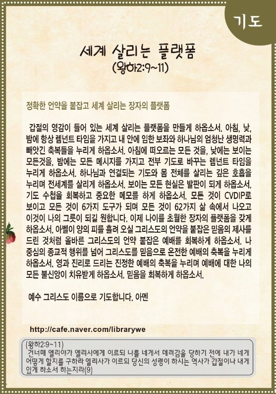 세계 살리는 플랫폼(열왕기하 2:9~11)