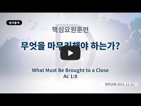 2022년 7월 8일(금) 분류 핵심훈련 제목 제1,2,3 RUTC응답의 현장(47) - 무엇을 마무리해야 하는가? 성경 사도행전 1:8 일시/장소 2021년 12월 11일, 언약교회 (온라인) 설교 류광수 목사 (녹취정리: 차동