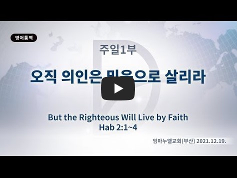 2022년 7월 19일(화) 분류 주일예배 설교- 주일1부 제목 오직 의인은 믿음으로 살리라 성경 하박국 2:1-4 일시/장소 2021년 12월 19일, 임마누엘교회(부산-온라인) 설교 류광수 목사 (녹취정리: 차동호