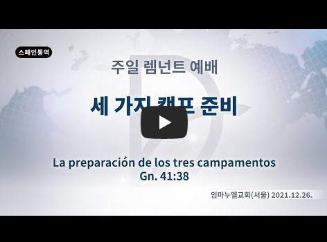 2022년 7월 29일(금) 분류 주일예배 설교- 렘넌트예배 제목 세가지 캠프 준비 성경 창세기 41:38 일시/장소 2021년 12월 26일, 임마누엘교회(서울) 설교 류광수 목사 (녹취정리: 차동호 목사) 출처 (사)