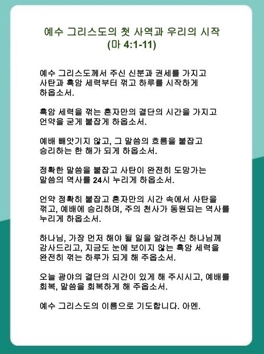 예수 그리스도의 첫 사역과 우리의 시작(마태복음 4:1~11)-기도수첩