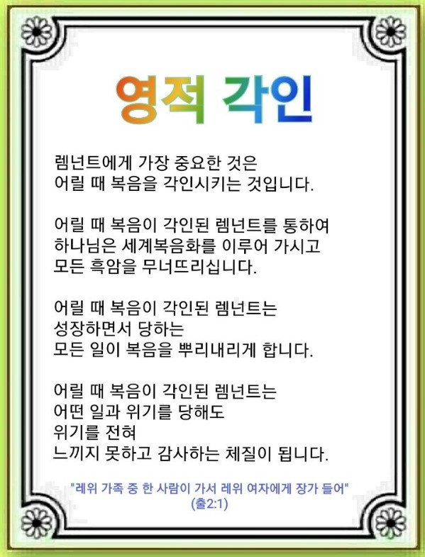 1. 어릴 때 복음을 각인시켜야 합니다.
