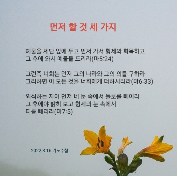 | 올바른기도는 하나님의것을 누릴 수 있다(마태복음 6:32~34)-기도수첩 (0) | 2022.08.15 |