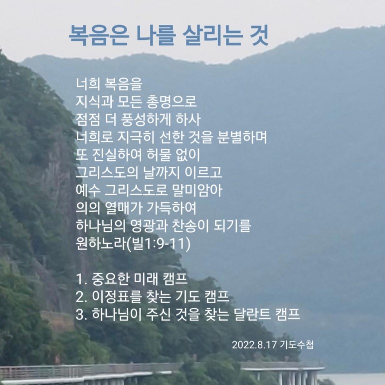 | 마지막 기회 – 복음은 다른 사람과 현장을 살리는 것(시편 78:70~72)-기도수첩 (2) | 2022.08.18 |