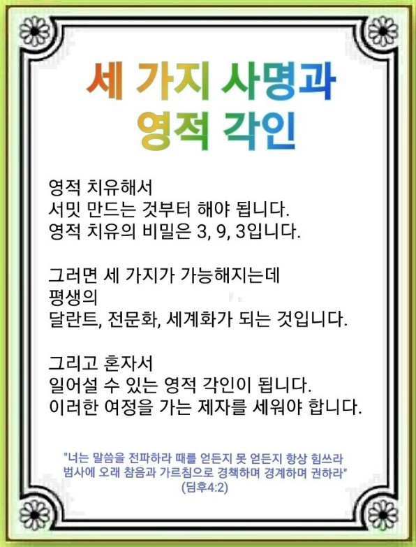 세 가지 사명과 영적 각인(디모데후서 4:1~5)