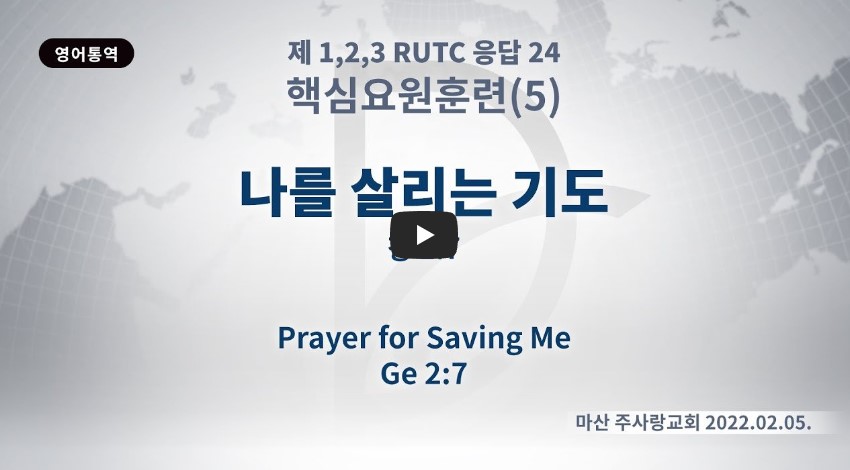 2022년 9월 28일 (수) 분류 핵심훈련(2022-제123RUTC응답24)-05 제목 나를 살리는 기도 성경 창세기 2:7 일시/장소 2022년 2월 5일, 마산 주사랑교회 설교 류광수 목사 (녹취정리: 차동호 목사) 출처 (사)세