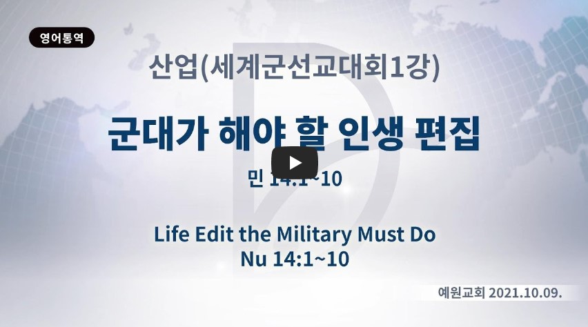 2022년 10월 4일(화) 분류 산업선교- 2021 세계군선교대회 제목 제1,2,3RUTC응답의 현장(38)-(세계군선교대회1강) 군대가 해야 할 인생 편집 성경 민수기 14:1-10 일시/장소 2021년 10월 9일, 예원교회(온라