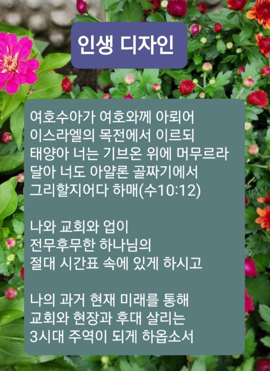 그렇다면 하나님이 꼭 필요로 하시는 것을 지금부터 해야 됩니다. 그게 전 세계 각인을 바꾸는 말씀 체험의 편집, 뿌리 바꾸는 기도 체험의 설계, 체질 바꾸는 전도 체험의 디자인입니다. 메시지를 계속 듣는 이유는 하나님의 절대 흐름을 보는 것입니다.