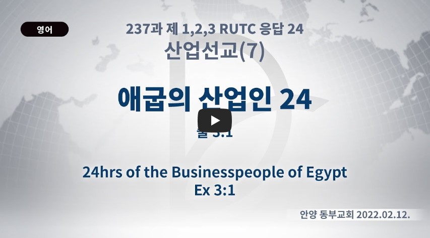 2022년 10월 10일(월) 분류 산업선교(2022-제123RUTC응답24)- 07 제목 애굽의 산업인 24 성경 출애굽기 3:1 일시/장소 2022년 2월 12일, 안양 동부교회 설교 류광수 목사 (녹취정리: 차동호 목사) 출처 (사)세