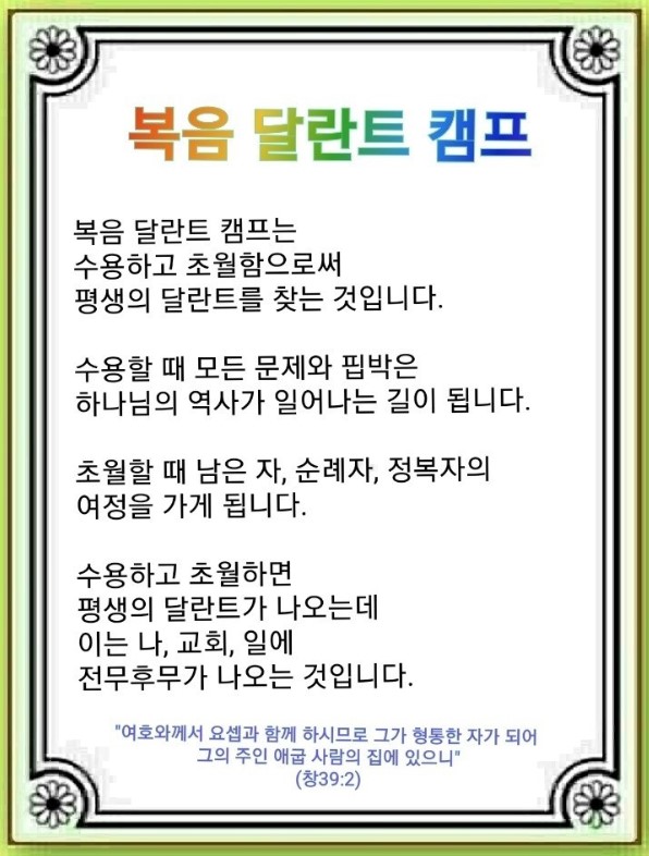 복음 달란트 캠프(창세기 39:2, 6)-몬테소리 치유센터