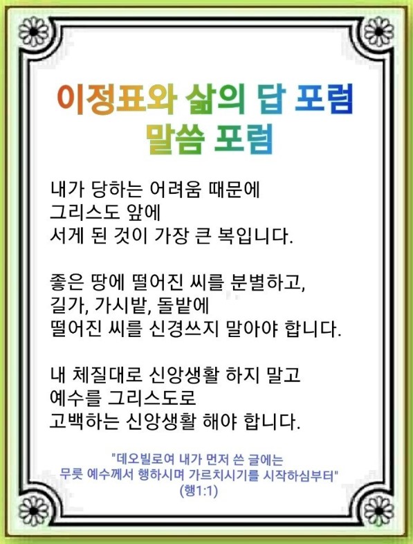 이정표와 삶의 답 포럼 - 말씀 포럼(사도행전 1:1)