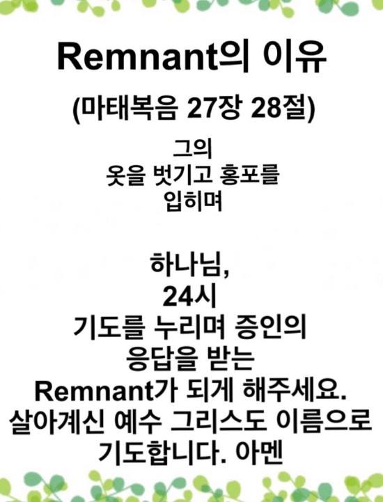 렘넌트의 이유(마태복음 27:28)-몬테소리 치유센터