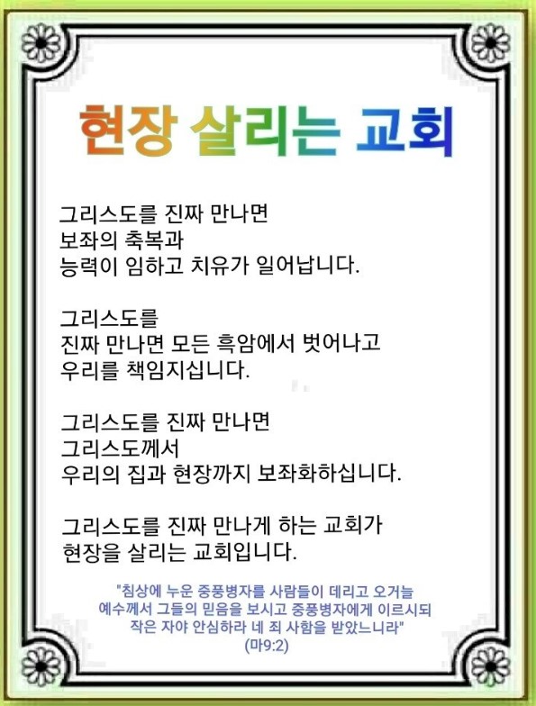 현장 살리는 교회(마태복음 9:1-8)-몬테소리 치유센터
