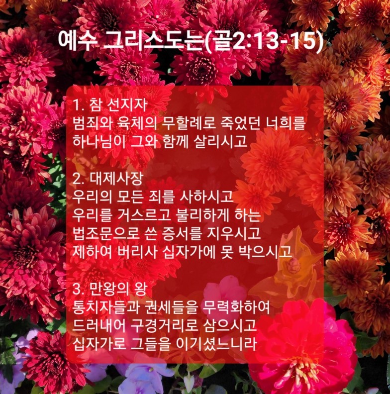 [언약 기도]하나님께 감사드립니다. 우리를 구원하신 하나님께 감사드립니다. 이 은혜를 만방에 증거 하게 하옵소서. 힘든 자에게 증거 하게 하옵소서. 세상 사람이 가지 않는 곳에 증거 하게 하옵소서. 예수 그리스도 이름으로 기도하옵나이다. 아멘.