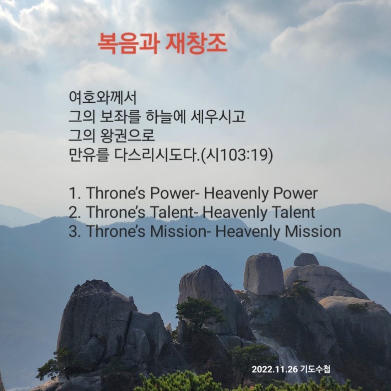 보좌의 능력입니다. 보좌에서 내리는 힘이 오직, 유일성, 재창조입니다. 이것은 사람과 연결되어(필독서, 학교 공부, 전문인과의 만남) 시작할 수 있지만 결국은 하나님께로부터 은혜를 받아야 보이는 것입니다.