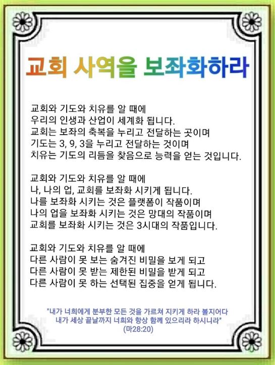 1. 세 가지를(교회, 기도, 치유와 서밋) 알면 가능합니다