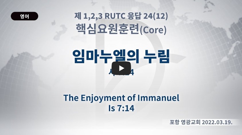 2022년 12월 9일 (금) 분류 핵심훈련(2022-제123RUTC응답24)- 12 제목 임마누엘의 누림 성경 이사야 7:14 일시/장소 2022년 3월 19일, 포항 영광교회 설교 류광수 목사 (녹취정리: 차동호 목사) 출처 (사)세