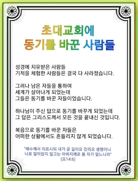 초대교회에 동기를 바꾼 사람들