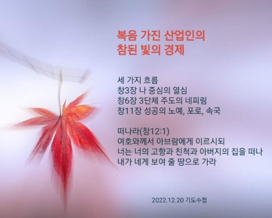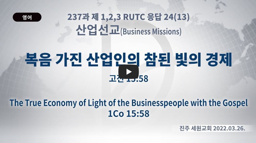 2022년 12월 20일 (화) 분류 산업선교(2022-제123RUTC응답24)- 13 제목 복음 가진 산업인의 참된 빛의 경제 성경 고린도전서 15:58 일시/장소 2022년 3월 27일, 진주 세원교회 설교 류광수 목사 (녹취정리: