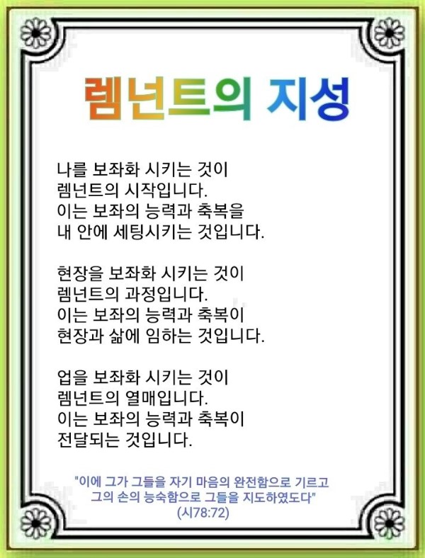 보좌의 능력과 축복을 내 안에 세팅시키는 것입니다. 나를 보좌화시키는 것입니다. 이것이 렘넌트의 모든 시작입니다. 내 안에 말씀으로(창 1:1), 빛으로(창 1:3) 세팅시켜 내 영혼을 살리는 것입니다.(창 1:27) 그리하여 내 모든 삶에 일어나는 보좌의 역사를 보는 것입니다.(창 1:28)