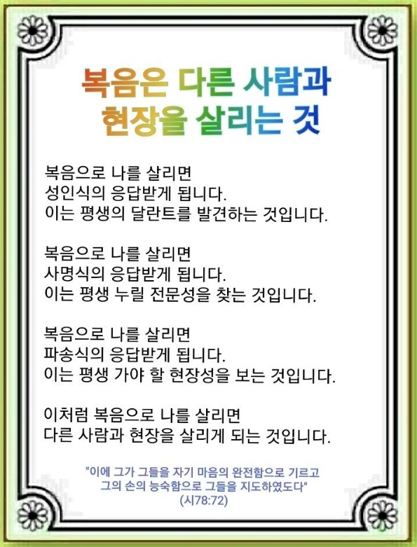 복음은 다른 사람과 현장을 살리는 것