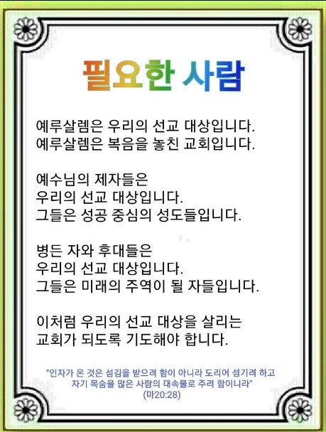 2023년 2월 14일 (화) 분류 주일예배 설교- 주일2부 제목 (평신도선교헌신) 필요한 사람 성경 마태복음 20:17-34 일시/장소 2022년 4월 24일, 임마누엘교회(부산) 설교 류광수 목사 (녹취정리: 차동호 목
