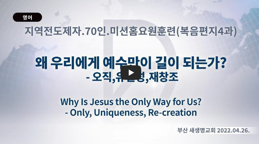 2023년 2월 17일 (금) 분류 2022- 237화요제자훈련(교재01-복음편지04) 제목 4-5강: 전도운동과 참 제자운동 성경 로마서 1:16 일시/장소 2022년 4월 26일, 부산 새생명교회(온라인) 설교 류광수 목사 (녹취