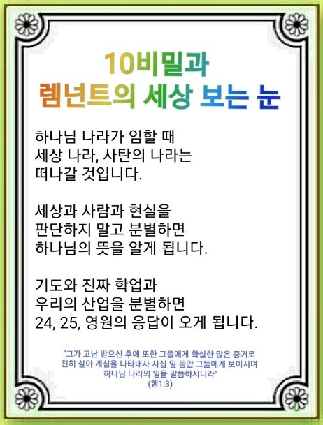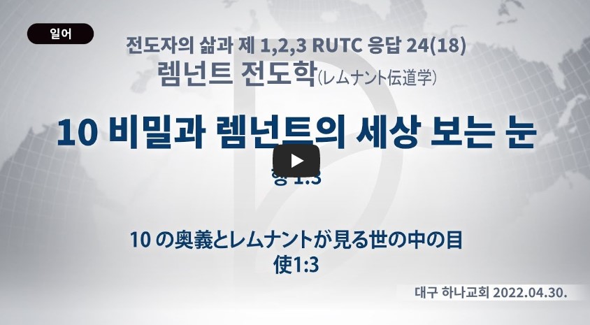 2023년 2월 21일 (화) 분류 렘넌트전도학(2022-제123RUTC응답24)- 18 제목 10비밀과 렘넌트의 세상 보는 눈 성경 사도행전 1:3 일시/장소 2022년 4월 30일, 대구 하나교회 설교 류광수 목사 (녹취정리: 차동