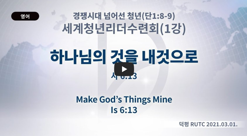 2022- 세계 청년리더수련회 1강: 하나님의 것을 내 것으로 이사야 6:13 ♠ 주제: 경쟁 시대를 넘어선 청년 (단1:8-9) ♠ ♠성경말씀(이사야 6:13) 그 중에 십분의 일이 아직 남아 있을지라도 이것도 황