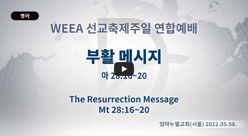 2023년 3월 4일 (토) 분류 주일예배 설교- 주일1부 (선교축제주일) 제목 부활 메시지 성경 마태복음 28:16-20 일시/장소 2022년 5월 8일, 임마누엘교회(서울) 설교 류광수 목사 (녹취정리: 차동호 목사)