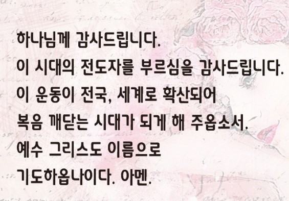 [언약 기도] 하나님 감사드립니다. 전국 세계 제자들 일어나 오직 복음으로 죽은 자 살리게 해 주옵소서. 너무나 많은 영적 문제 일어나고 있습니다. 오직 복음의 빛이 어두움을 물리치게 해 주옵소서. 예수 그리스도 이름으로 기도하옵나이다. 아멘.