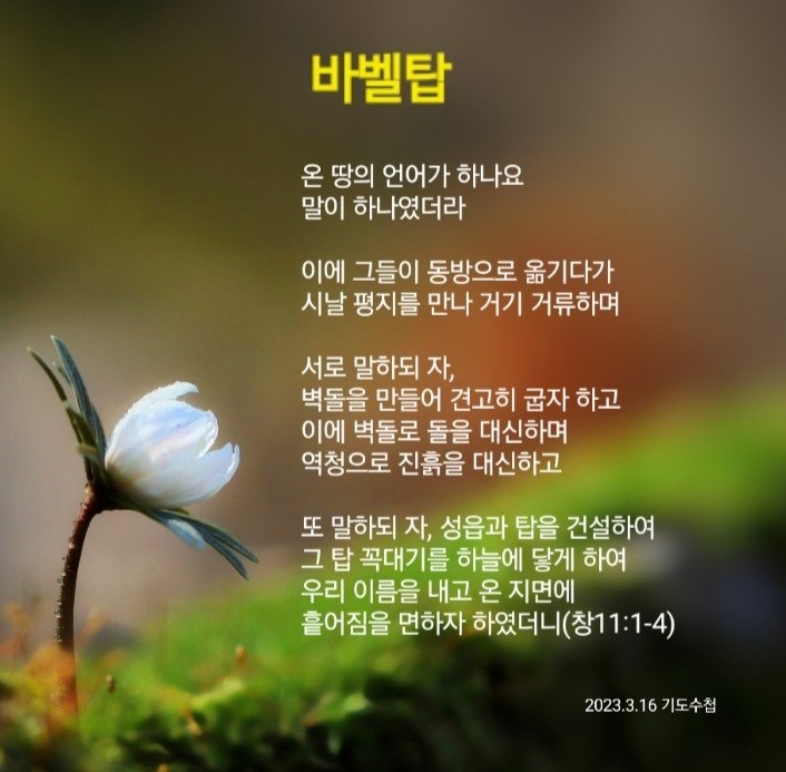 2023년 3월 16일 (목) 분류 구역공과- 2022년 20과 제목 바벨탑(창11장) 사건과 나의 24 성경 창세기11:1-8 → 창세기12:1-3 일시/장소 2022년 5월 15일, 임마누엘교회(부산) 설교 류광수 목사 (녹취정리: 차