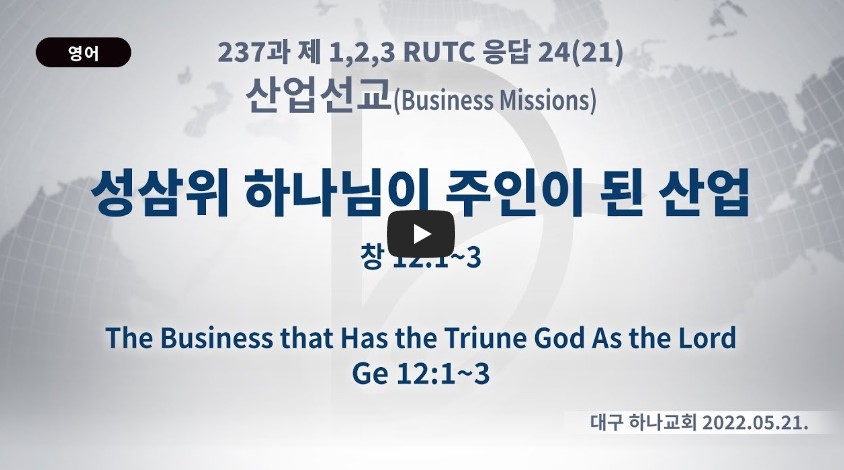 2023년 3월 22일 (수) 분류 산업선교(2022-제123RUTC응답24)- 21 제목 성삼위 하나님이 주인이 된 산업 성경 창세기 12:1-3 일시/장소 2022년 5월 21일, 대구 하나교회 설교 류광수 목사 (녹취정리: 차동호