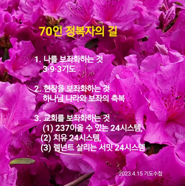 이제 보좌의 능력을 가지고 나의 업을 최고로 만들어 70인운동을 해야 됩니다. 70나라 살리는 CVDIP를 만들어서 편집•설계•디자인하여 각인•뿌리•체질 되게 만들면 됩니다.
