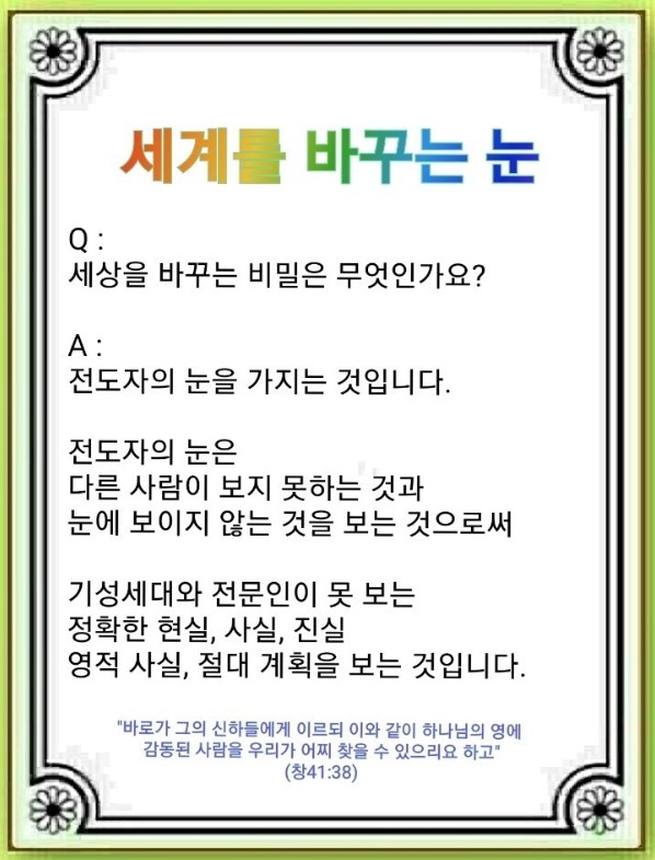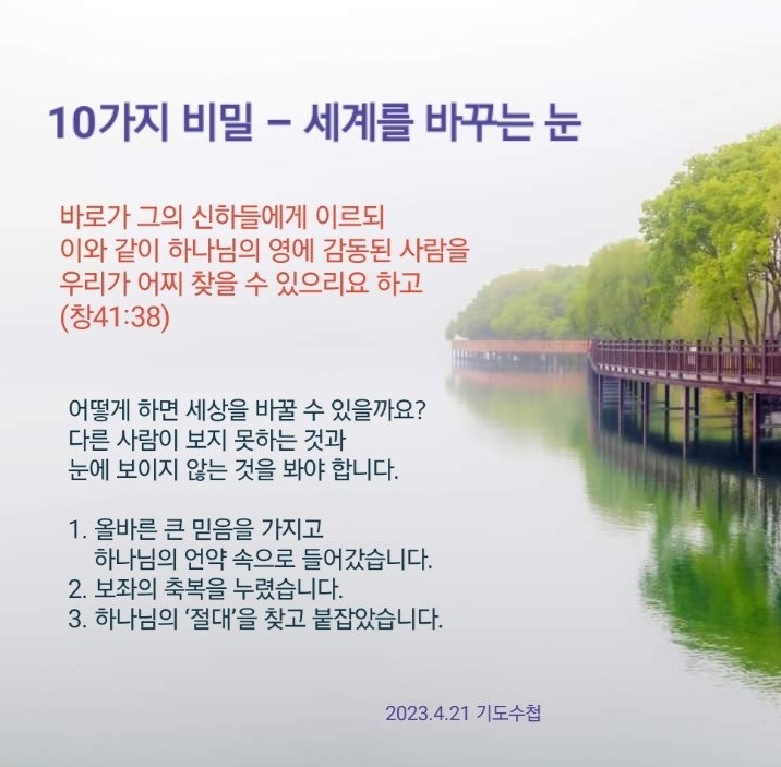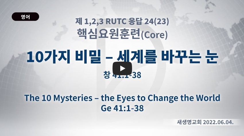 2023년 4월 21일 (금) 분류 핵심훈련(2022-제123RUTC응답24)- 23 제목 10가지 비밀- 세계를 바꾸는 눈 성경 창세기 41:1-38 일시/장소 2022년 6월 4일, 새생명교회 설교 류광수 목사 (녹취정리: 차동호 목사)