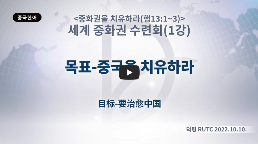 제22차 세계중화권수련회 1강 인터넷총국 (홈페이지 http://data.rutc.com) 후원: (국민은행) 856701-04-233309 (사)세계복음화전도협회 인터넷총국 분류 2022- 세계 중화권 수련회 제목 1강: 「목표 – 중국