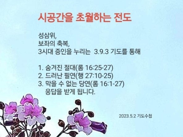 3·9·3 누리는 시공간 초월의 기도로 시공간을 초월하는 전도가 드디어 가능하게 됩니다.