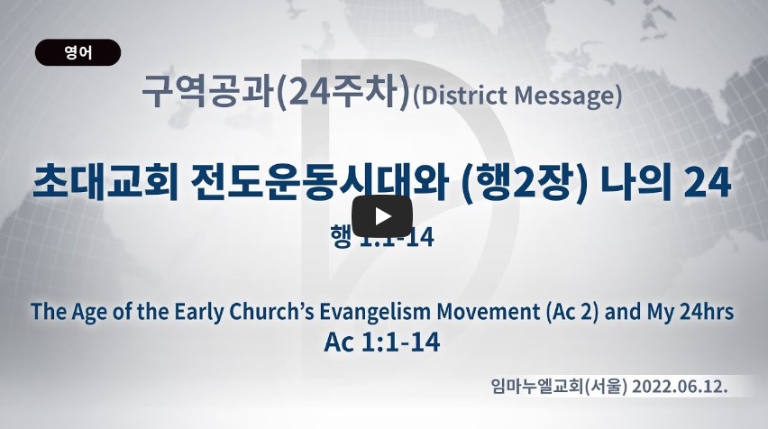 구역공과 초대교회 전도운동시대(행2장)와 나의 24 인터넷총국 (홈페이지 http://data.rutc.com) 후원: (국민은행) 856701-04-233309 (사)세계복음화전도협회 인터넷총국 분류 구역공과- 2022년 24과 제목 초