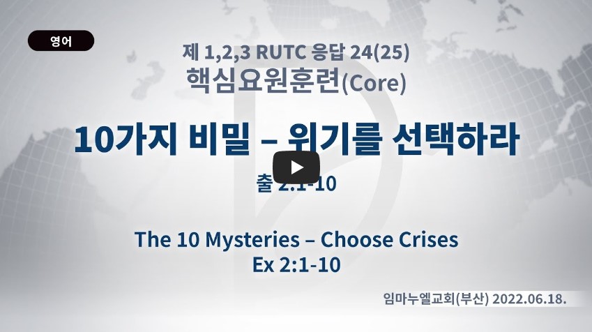 2023년 5월 17일 (수) 분류 핵심훈련(2022-제123RUTC응답24)- 25 제목 10가지 비밀- 위기를 선택하라 성경 출애굽기 2:1-10 일시/장소 2022년 6월 18일, 임마누엘 교회(부산) 설교 류광수 목사 (녹취정리: 차
